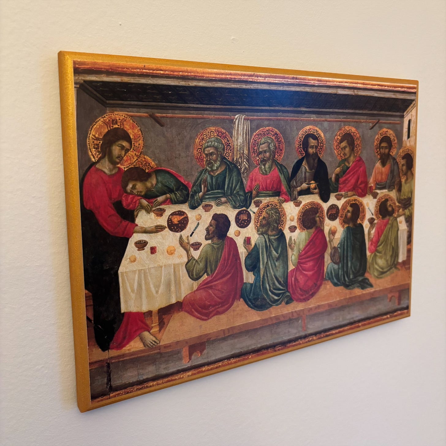 My wife and I have two images of the Last Supper overlooking our own kitchen table, portraying what is “the source and summit of the Christian life” (Catechism of the Catholic Church no. 1324) and “the sum and summary of our faith” (Catechism of the Catholic Church no. 1327). The first was painted by a priest in Colombia…